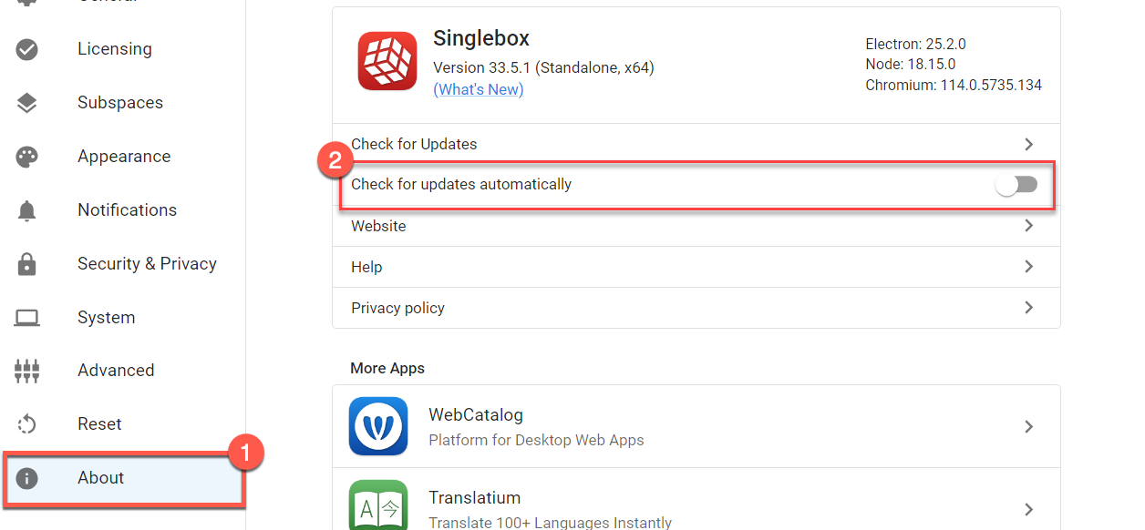 **Bản cũ:** Với anh em tải bản cũ, dùng để ngâm tích xanh, phải tắt mạng trước khi bật Singbox lần đầu tiên, sau đó vào trong About tắt Update đi.